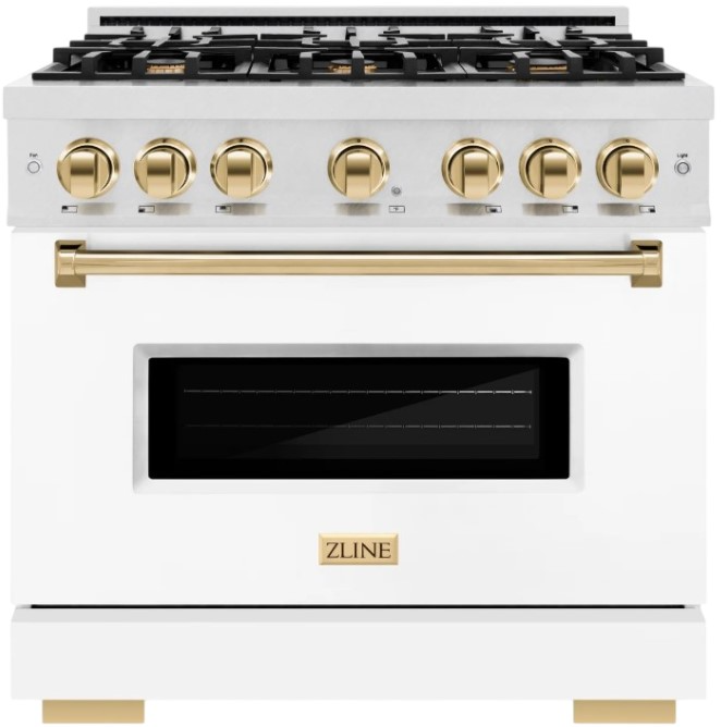 Luxury isn’t meant to be left desired—it’s meant to be attainable. The ZLINE Autograph Edition 36 in. 5.2 cu. ft. Classic Dual Fuel Range with 6 Burner Gas Cooktop and Electric Convection Oven in Satin Stainless Steel with White Matte Door and Polished Gold Accents (CDRSZ-WM-36-G) combines the elegance of a hand-finished porcelain gas cooktop with 6 Italian-made auto-reignition burners, an electric convection oven with an energy-efficient cooling fan to ensure quiet operation, a beautiful white matte door with a Landscape window design, and stunning polished gold knobs and handle allowing you to master every meal. With a modern, timeless style and refined functionality, ZLINE Classic Dual Fuel Ranges are masterfully crafted to deliver an elevated culinary experience.Read More
