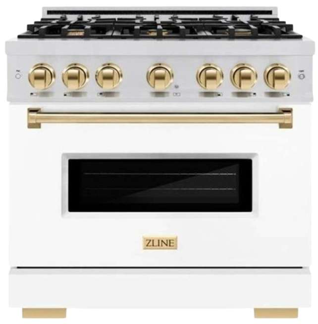 The elegance of a hand-finished porcelain gas cooktop with 6 Italian-made auto-reignition burners, an electric convection oven with an energy-efficient cooling fan to ensure quiet operation, a beautiful white matte door with a Landscape window design, and stunning polished gold knobs and handle allowing you to master every meal. With a modern, timeless style and refined functionality, ZLINE Classic Dual Fuel Ranges are masterfully crafted to deliver an elevated culinary experience.