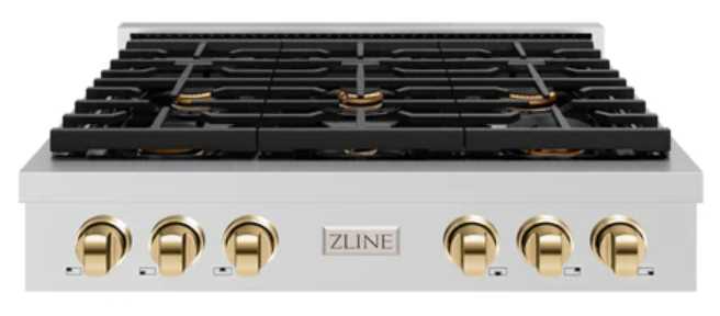 6 Italian-made auto-reignition burners, a hand-crafted porcelain cooktop, enhanced cast iron grates, and elegant polished gold knobs allowing you to master every meal. With a modern, timeless style and refined functionality, ZLINE Paramount Gas Rangetops are masterfully crafted to deliver an elevated culinary experience.